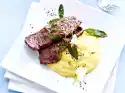 In the meantime heat up the fat in a pot and roast the cashew nuts in it. Add rice, sauté and deglaze with 1/2 liter water. Season with 1 teaspoon of salt and vegetable stock, bring to the boil, cover and allow to swell over a low heat for 15-20 minutes. Remove the roulades from the stew stock and keep warm. Pour cream into the stock, bring to the boil and pour in the sauce thickener while stirring. Bring to the boil again briefly and season to taste with salt and curry. Arrange the roulades with the sauce on a deep plate and garnish as desired with pineapple slices, green pepper pancake and lemon balm leaves. Put rice in a bowl, sprinkle with a little curry and add extra