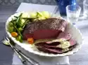 Chop the olives finely. Drain the peppers in a sieve. Cut the peppers in half horizontally. Dab roulades dry and season with salt and pepper. First olives, then pieces of paprika on it and roll up.