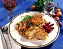 Remove the roulades from the stock. Bring the roast stock to the boil and thicken. Add lemon slices and simmer for about 2 minutes. Season sauce with salt and pepper. Heat the roulades in the sauce. Drain the noodles. Arrange the roulades on a plate