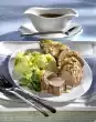 Stir sour cream until smooth and pour over the potatoes. Cook in the open roaster in the preheated oven (electric cooker: 200 °C/ gas: level 3) for another 30 minutes. Cover if necessary. Before serving, wash, chop and sprinkle parsley over the potatoes.