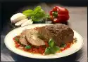 Wash the meat, dab dry, remove from the bone and cut into large cubes. Heat oil in a pot, fry meat and bones in it. Fill up with vegetable stock and let it boil for 1 hour at low heat. Add tortellini after 30 minutes.