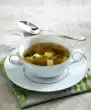 Heat the fat in the pot, fry the vegetable cubes in it and season with salt and pepper. Add onion and 1 litre of water, bring to the boil and simmer for about 45 minutes