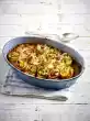 Peel and coarsely grate the potatoes. Mix the grated potatoes with egg, paprika and approx. 1/3 of the cheese mixture. Season with salt and pepper. Spread the hash mixture on the casserole, press on a little. Sprinkle with remaining cheese. Bake in a preheated oven (electric cooker: 200 °C/ convection oven: 175 °C/ gas: level 3) for 40-45 minutes until golden brown. Wash the chives and cut into long rolls. Serve the casserole sprinkled with chives