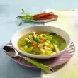 Add stock, bring to the boil and simmer covered for 12 minutes until the liquid is absorbed. Add broccoli and peas 5 minutes before the end of cooking time. Season to taste with salt and pepper. Wash the parsley, dab dry and chop coarsely except for a little to garnish.