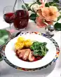 Add the peppers, zucchini and tomatoes. Chop rosemary, sprinkle over it and dust with flour. Deglaze with 3/4 litre water and vegetable juice. Cook for 30 minutes, stirring occasionally. Mix in the potatoes, season again and serve.
