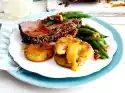 them lengthwise. Wash the rosemary. Wash the meat and pat dry. Heat 1 tablespoon of oil in two pans. Fry the chops on each side for about 8 minutes. Season with salt and pepper. Put all chops in a pan, cover and let them rest in the remaining heat.