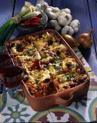 Finely grate the cheese. Spread the bottom of a greased casserole dish (approx. 15 x 25 cm) with 2-3 tbsp. sour cream. Alternately layer lasagne dishes, vegetables and 2/3 cheese. Finish with vegetables. Spread the rest of the sour cream and cheese on top. Bake in a hot oven (electric cooker: 200 °C / convection oven: 175 °C / gas: level 3) for approx. 35 minutes