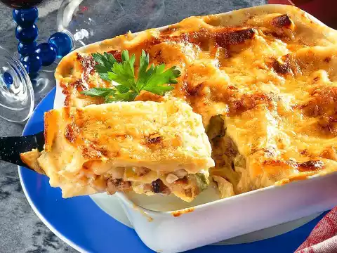 Layer the sauce, lasagne dishes, vegetables (with the stock) and cheese alternately in a greased ovenproof dish. Bake lasagne in a preheated oven (electric: 200 °C/ gas: level 3) for 35-40 minutes.