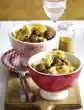 Leave the bacon in a pan over medium heat for 1-2 minutes. Add mushrooms and fry for another 4-5 minutes. Add cherry tomatoes about 1 minute before the end of cooking time. Take out vegetables and bacon and deglaze the roasting set with broth.