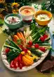 Mix flour and salt in a bowl. Add about 250 millilitres of water and knead into a smooth, firm dough. Wrap in foil and let rest for 30 minutes. In the meantime clean, wash and drain the lettuce, peppers, carrots and courgettes. Cut lettuce and peppers into strips, zucchini and carrots into sticks.