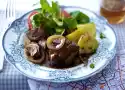 Lift out vegetables and mushrooms and arrange on plates. Drizzle marinade from the pan over them. Serve with baguette