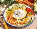 Keep the potato thalers warm. Cook the broccoli florets and carrot cubes in boiling salted water for about 5 minutes. Drain the vegetables and turn them briefly in the frying fat. Mix yoghurt and curry. Season to taste with salt and pepper. Wash and finely chop the parsley and stir into the yoghurt sauce. Arrange 2 potato taler each with vegetables and sauce on plates. Garnish with parsley