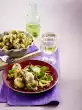 Spread drained spinach on top. Roll it up from the narrow side with the help of the foil and cut it into eight slices. Heat clarified butter in a coated pan. Fry the vegetable slices for two to three minutes on each side.