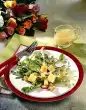 Pour the vegetables onto a sieve, drain and allow to cool. Blanch the sprouts for about 1/2 minute in boiling salted water, pour onto a sieve, rinse under cold water and drain. Boil eggs hard for about 10 minutes.