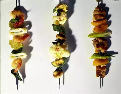 Per skewer approx. 250 kJ/ 60 kcal. E 2 g/ F 5 g/ 2 KH g