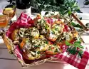Wrap the sides. Place the strudel with the seam side down on a baking tray lined with baking paper. Bake in a preheated oven (electric: 200 °C/ gas: level 3) for approx. 30 minutes. Wash the herbs and pat dry. Remove leaves and chop finely. Cut chives into small rolls. Stir curd, herbs, salt and pepper until smooth. Serve the strudel lukewarm with herb curd cheese and a green salad to taste