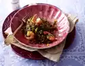 Clean and wash the zucchini and aubergine and cut lengthwise into slices. Halve, clean, wash and quarter the peppers. Season vegetables with pepper and marinate them with olive oil for 30 minutes. Remove vegetables from the marinade and season with salt. Grill them on the preheated grill on both sides until they turn brown or fry them in a pan. Clean, wash and chop the radicchio. Line a terrine mould (16 centimetres long, 6 centimetres wide) first with foil, then with grilled courgette slices.