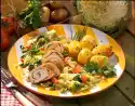 Sprinkle with remaining herbs. Wash turkey fillet, pat dry and cut into 2 medallions. If necessary, tie round with kitchen string. Fry in hot oil for 2-3 minutes on each side. Season with salt and pepper. Sprinkle with sesame seeds. Put on the vegetable plate