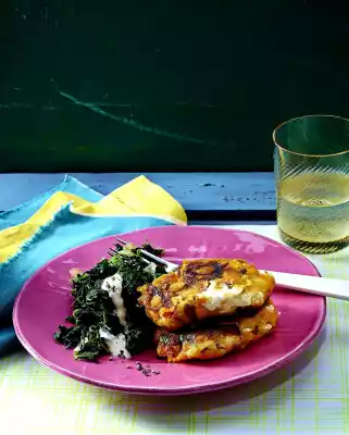 Form 8 flat meatballs from approx. 2 tbsp. of the mixture. Put the flour on a plate and turn the meatballs in it. Heat 2 tablespoons of oil in a pan and fry 3 meatballs on both sides until golden brown.