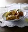 Peel the red onion and cut into rings. Heat 2 tablespoons of oil in a frying pan and fry the onion rings in it. Wash parsley and chop finely. Chop the feta cheese. Stir parsley, cheese, onion rings and egg into the potato mixture.