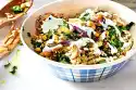 Wash parsley and shake dry, pluck off leaves and chop. Take the tajine out of the oven. Season with salt and pepper. Serve sprinkled with parsley. Yoghurt tastes good with it. Sprinkle with Ras el-Hanout if you like.