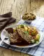 Place the roast in the pan on a cake rack, after approx. 10 minutes carefully turn out of the pan. Serve roast hot or cold with salad