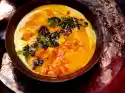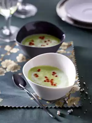 4 Divide the velouté among pretty plates or verrines and place salmon roe on top. Serve immediately.