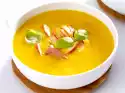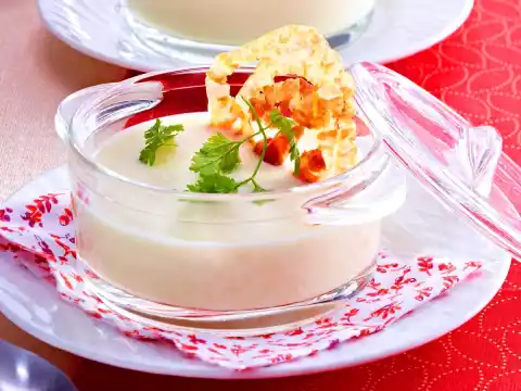 Finely puree the soup. Wash the chervil, shake dry and chop the leaves of 2 stems very finely. Add chopped chervil to the soup, season with salt and pepper. Arrange the soup and pancetta slices and garnish with chervil