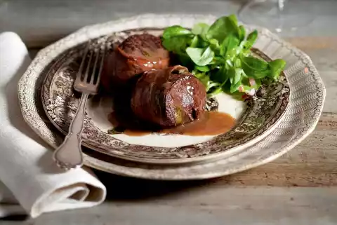 Remove the medallions from the oven, wrap them in aluminium foil and let them rest for 5 minutes. Remove sage from the pan. Add Marsala to the roast in the pan and bring to the boil. Remove the pan from the heat and stir in cold butter in pieces one after the other with a whisk until you get a creamy sauce.