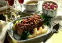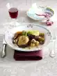 Keep the roast warm. Sieve the stock and pass through the honey cake and vegetables. Stir the cranberries into the sauce. Stir flour and a little water until smooth. Stir into the sauce and simmer for about 5 minutes. Season to taste with salt, pepper and sugar. Serve everything. Wash the parsley, chop finely and sprinkle on top. Served with: apple red cabbage and dumplings