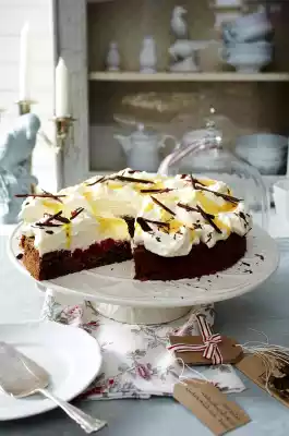 Mix 2 sachets of vanillin sugar with cream setting agent. Whip the cream until stiff, allowing the sugar mixture to trickle in. Remove the base from the mould. Spread the cream loosely on top, pressing depressions into the cream with the back of a spoon.