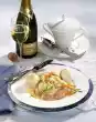 Lay out dough sheets on the work surface. Put approx. 1 teaspoon of filling on each sheet, roll up. Spread the ends with starch and press on. Heat approx. 1⁄2 litres of oil in a high pan or deep fryer to approx. 180 °C.