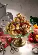 Wash and dry the limes and cut them into thin slices. Heat up the sugar syrup and let the lime slices steep briefly in it. Take them out and let them drain. Remove the rim of the springform pan. Sprinkle the cake rim with green sugar. Cover cake with lime slices
