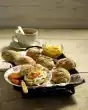 Separate eggs. Beat the egg whites and 2 tablespoons of cold water until stiff, adding sugar and vanillin sugar. Stir in the egg yolks one after the other. Sift flour and baking powder over it and fold in carefully. Line the bottom of a springform pan (26 cm Ø) with baking paper. Fill in sponge cake mixture and smooth it down.