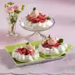 Whip the cream until stiff and allow the vanilla sugar to trickle in. Fold in 3 tablespoons of grated coconut, strawberry puree and pieces of strawberries. Divide the waffles into five individual hearts. Make small tartlets from three hearts and a little cream. Sprinkle with the remaining grated coconut. Decorate with coconut chips and strawberries