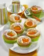 Melt 30 g fat and let it cool down a little. Whisk egg, milk, 24 g sweetness and 1 pinch of salt. Mix flour and baking powder and stir in briefly. Stir the liquid fat briefly into the mixture