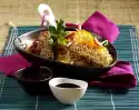 Add 50 ml white wine and 50 ml stock, add orange zest and cook for another 2-3 minutes. Put carrot strips and stock in a bowl. Heat 2 tablespoons of butter in a frying pan, sauté the remaining diced shallots for about 2 minutes. Add 100 ml stock and 50 ml white wine and bring to the boil, add Brussels sprouts and cook over low heat while turning for 3-4 minutes, season with salt, pepper and nutmeg. Put stock, Brussels sprouts, carrot strips, parsley and meat in a bowl, mix and season with salt, pepper and sugar