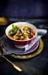 Cook the lentils in 1/2 litre of boiling broth for about 45 minutes. Peel, wash and slice potatoes and carrots. Peel garlic and ginger, dice very finely. Peel shallots. Heat oil. Fry shallots for about 4 minutes, turning them, add garlic and ginger and sweat them. Add potatoes, sauté and deglaze with remaining stock.