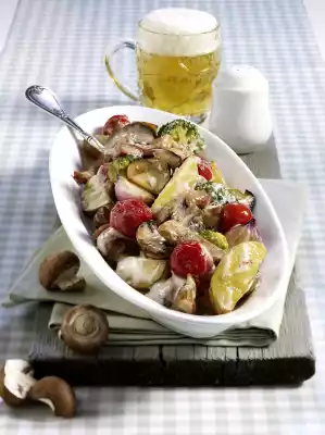 Wash the potatoes thoroughly and cut into slices. Clean and clean the mushrooms and possibly halve them. Wash, clean and slice porcini mushrooms. Peel and halve shallots.