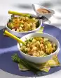 Cut pork fillet into thicker strips. Put everything in a bowl and season with salt and pepper. Fold in oil and 100 g salad cream. Spread everything on the fat pan of the oven. Roast in the preheated oven (electric cooker: 175 °C/ convection oven: 150 °C/ gas: level 2) for 20-25 minutes.