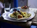 Clean, wash and pluck the watercress and drain well. Wash and halve the tomatoes. Clean, wash and cut spring onions into rings