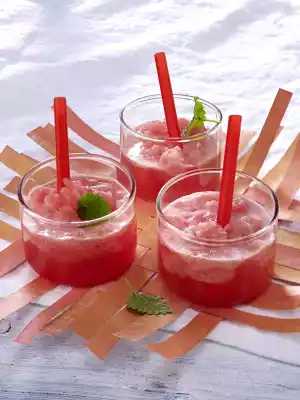 Wash lemon grass and cut in half lengthwise. Bring to the boil briefly together with sugar and 100 ml water (sugar must be dissolved) and allow to cool. Remove the seeds from the melon, remove the flesh from the skin and puree. Mix with sugar syrup and lime juice