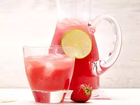 Wash, clean and chop the strawberries. Cut the melon pulp from the skin, remove the seeds if necessary and dice the pulp (approx. 650 g). Puree finely with strawberries, lime juice and sugar in a mixer.