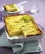 Whisk eggs and milk. Season with salt and nutmeg. Pour into a greased flat form. Cover with foil and let it stand in a hot water bath for about 25 minutes