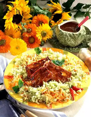 Wash the ribs, pat them dry. Roast in a hot oven (electric cooker: 200 °C / convection oven: 175 °C / gas: level 3) for approx. 30 minutes