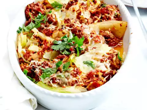 Cook rice in boiling salted water according to package instructions. Pour into a sieve and drain. Clean and wash cabbage, remove stalk and chop cabbage. Cook in boiling salted water for 5-6 minutes until soft.