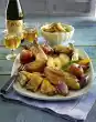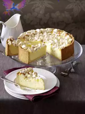 Grease a springform pan (26 cm Ø) and sprinkle with flour. Cut open a freezer bag and dust lightly with flour. Briefly knead the short pastry again and roll out on the freezer bag to a round plate (approx. 34 cm Ø). Line the mould with the short pastry and press a 4-5 cm high rim. Prick the pastry base several times with a fork and line with baking paper. Pour in peas and bake in the preheated oven, bottom shelf (electric cooker: 200 °C/ convection oven: 175 °C/ gas: level 3) for about 20 minutes. Cream 4 eggs, 100 g sugar and 1 packet of vanilla sugar. Stir in sour cream, starch, cream cheese and chocolate coating one after the other. Remove peas and baking parchment from the tin, pour in the cheese-chocolate mixture and smooth it down. Sprinkle with meringue crumbs. Bake in the preheated oven lower shelf (electric oven: 175 °C/ convection oven: 150 °C/ gas: level 2) for approx. 1 hour.