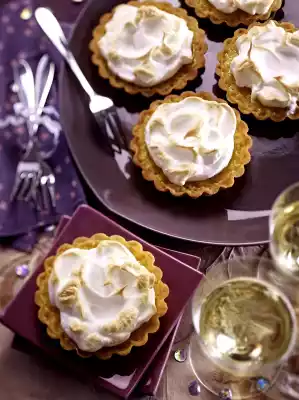 Roll out the dough and cut out 6 circles (each approx. 12 cm Ø). Line 6 Tartelettes (à 10 cm Ø) with lift-off base with the dough and prick with a fork. Cut out 6 circles (à approx. 11 cm Ø) from the baking paper, place them on the dough and fill up with dried peas. Bake in the preheated oven (electric cooker: 175 °C/ convection oven: 150 °C/ gas: see manufacturer) for approx. 15 minutes