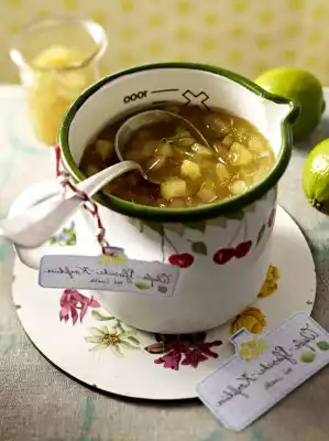 Bring the peach mixture to the boil over high heat while stirring. Boil for at least 4 minutes while stirring continuously. Stir the lime zest into the finished jam and immediately fill into clean twist-off jars. Close the jars, place them on the lid for about 5 minutes. Turn them over again and let them cool down
