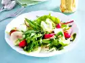 Peel and finely chop the onion. Pour the pickled radishes onto a sieve and collect the stock. Mix 100 ml vinegar stock, onions, some salt and pepper. Embezzle oil. Mix white sausage, cheese, radishes and romaine lettuce with the vinaigrette.